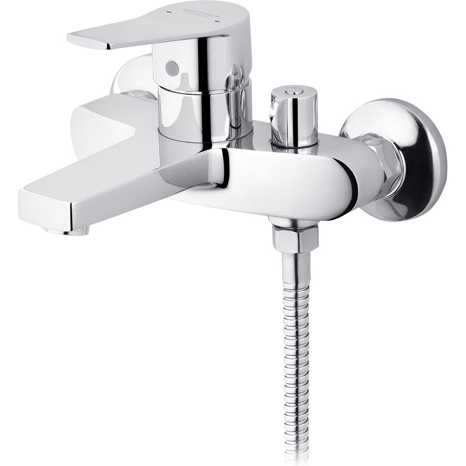 Призначений спеціально для ванної змішувач Kroner KRP Enzo - C060 легко монтується на стіні, забезпечуючи чистий та організований вигляд простору. Виготовлений із високоякісної латуні, забезпечує міцність та довговічність. Механізм змішування на основі картриджа дозволяє плавно регулювати температуру води. Глянцева поверхня та елегантна кругла форма лійки надають шарму та привабливості. Змішувач Kroner забезпечить комфорт та задоволення під час кожного використання.