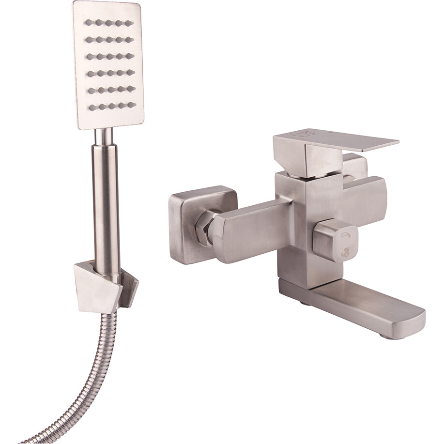 Змішувач для ванни Lidz (NKS) 10 30 006-1 виконаний у кубічному стилі з нержавіючої сталі, що гарантує тривалий термін експлуатації. Для включення подачі води достатньо підняти важіль і повернути його у потрібний бік. Змішувач монтується на стіну над ванною за допомогою кріпильних елементів, що входять до комплекту. Квадратні розетки приховують похибки установки на оздобленні. Утримувач лійки кріпиться також на стіну. Таким чином, ваші руки будуть вільні під час прийняття душу.