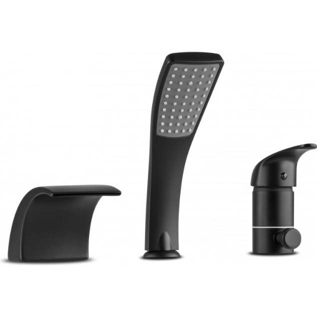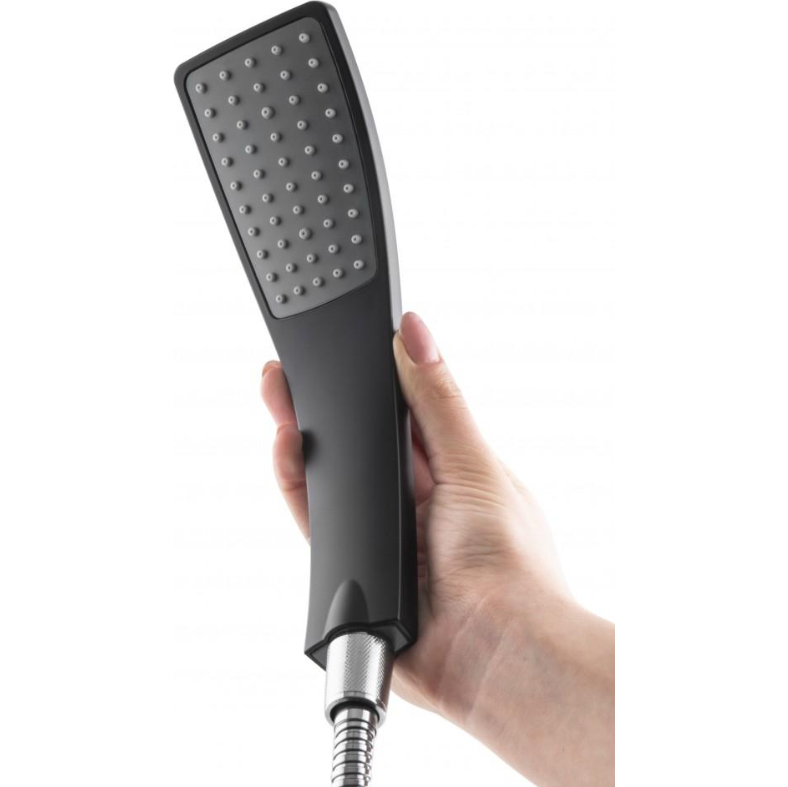 Сучасний набір із змішувачем для ванни та ручною лійкою чорного матового кольору . Дизайн набору відповідає останнім тенденціям – він виглядає дуже елегантно та чудово вписується у сучасну ванну кімнату.