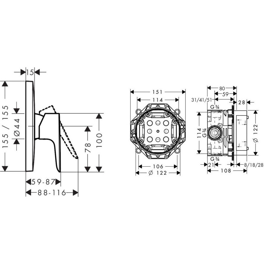 - підходить для всіх комплектів обробки душу, ванни та термостата для прихованої установки