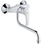 - Класичні – змішувачі для кухні «без доповнень» - моделі з видовженим високим або довгим поворотним виливом. Розраховані на те, що посуд відповідає розмірам миття. Можуть бути вбудованими (тоді потрібна мийка з отвором або отвір у стільниці) або з настінним монтажем.